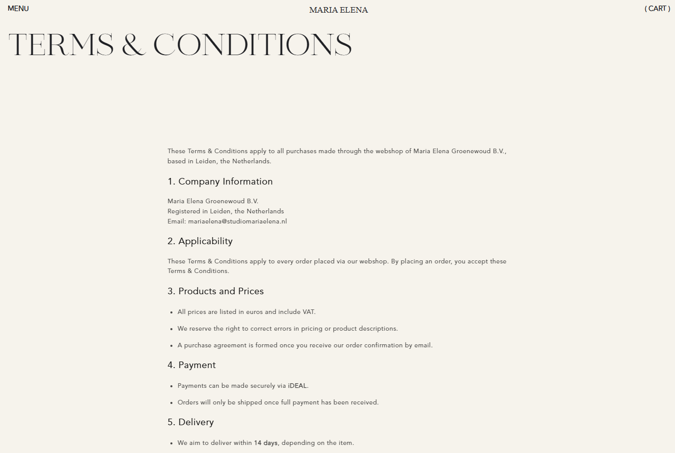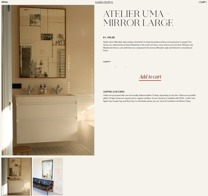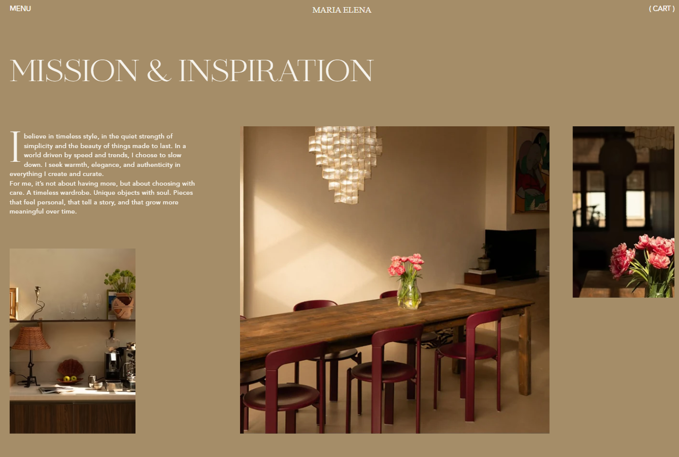 Founded by Maria Elena Groenewoud, Studio Maria Elena blends modern design with carefully selected vintage finds. The brand focuses on interiors and objects that feel personal, meaningful, and enduring.